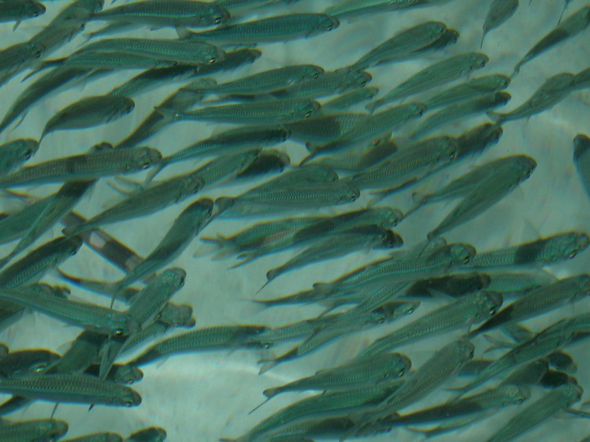 時々大型の魚がこの群を狙っていましたが、それでも周囲3m程度の間隔を取るだけで、どこかに散って消えてしまうということはありませんでした。「みんなでいれば怖くない」ということなんでしょうか。