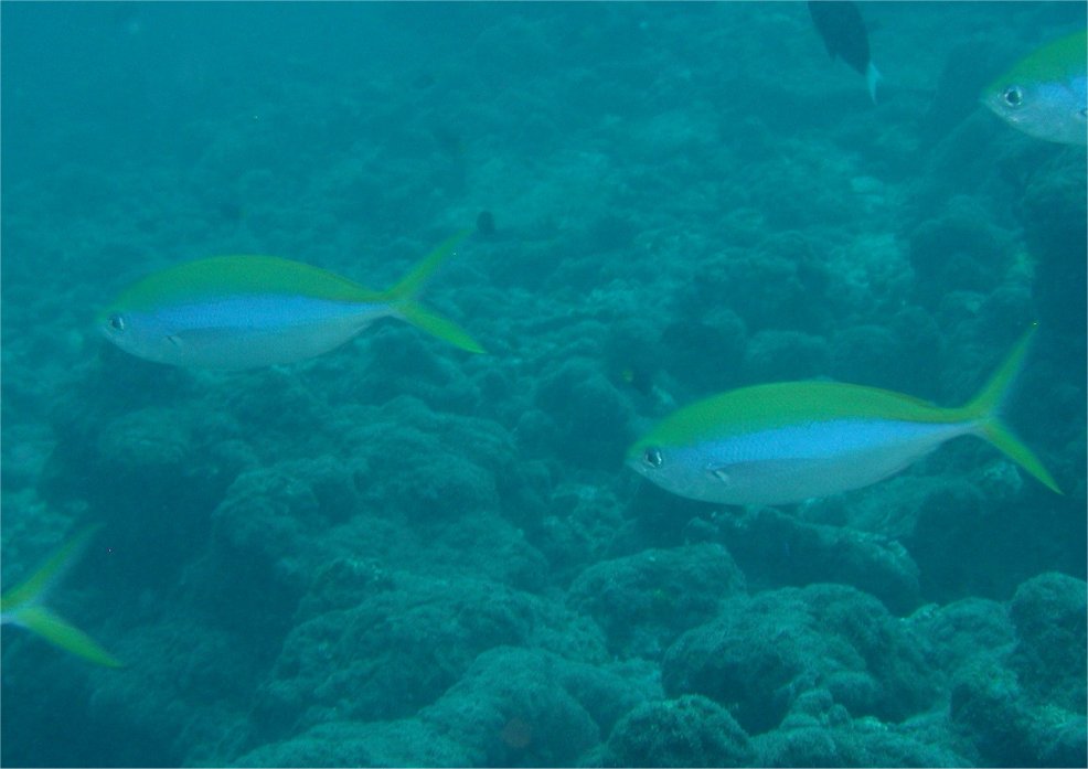 水深20mくらいの岩礁をあまり大きくない群れを作って右へ行ったり左へ行ったりしていましたが、餌を食べる時間ではなかったようで、のんびりした雰囲気でなんとなく時間をつぶしているように見えました。
