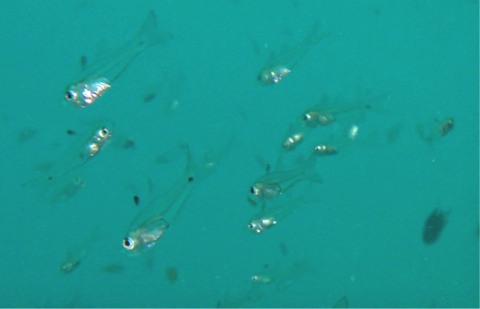 体長は2〜3cmというところ。体が透き通っていて中の骨が見えちゃっています。透明のためにピントがあっていませんが、これはデジカメの宿命のようなもので、あきらめるしかありません。