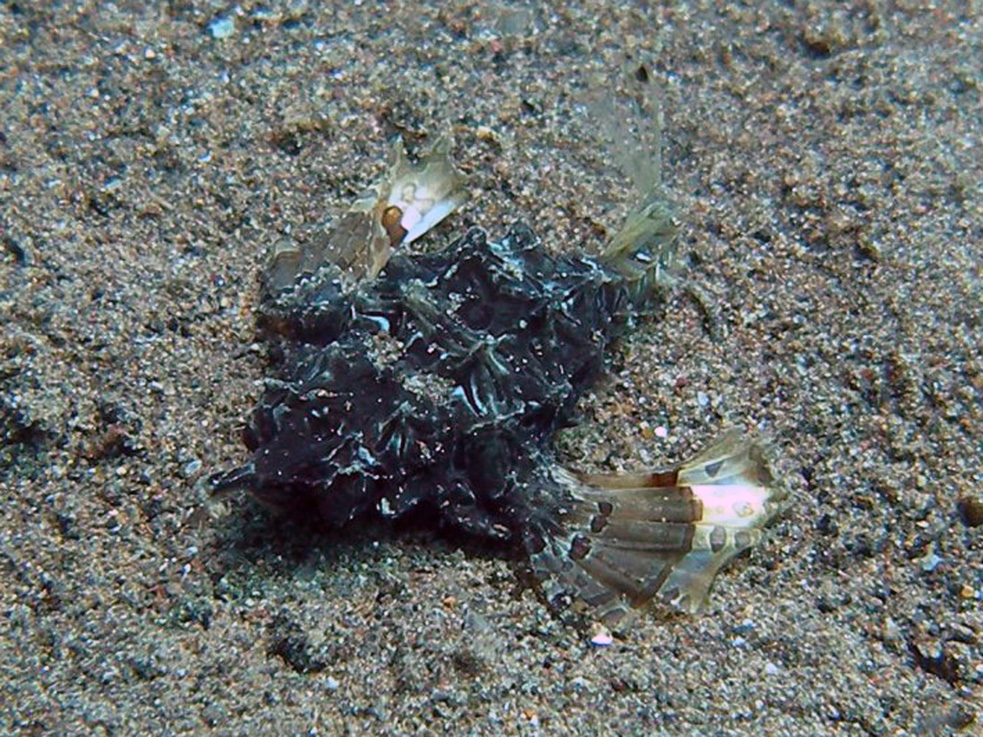 黒い折り紙で作ったのか、鉄板をたたいて作ったのか・・・ともかく前掲とはだいぶ異なる色の個体が撮れたので追加しました。