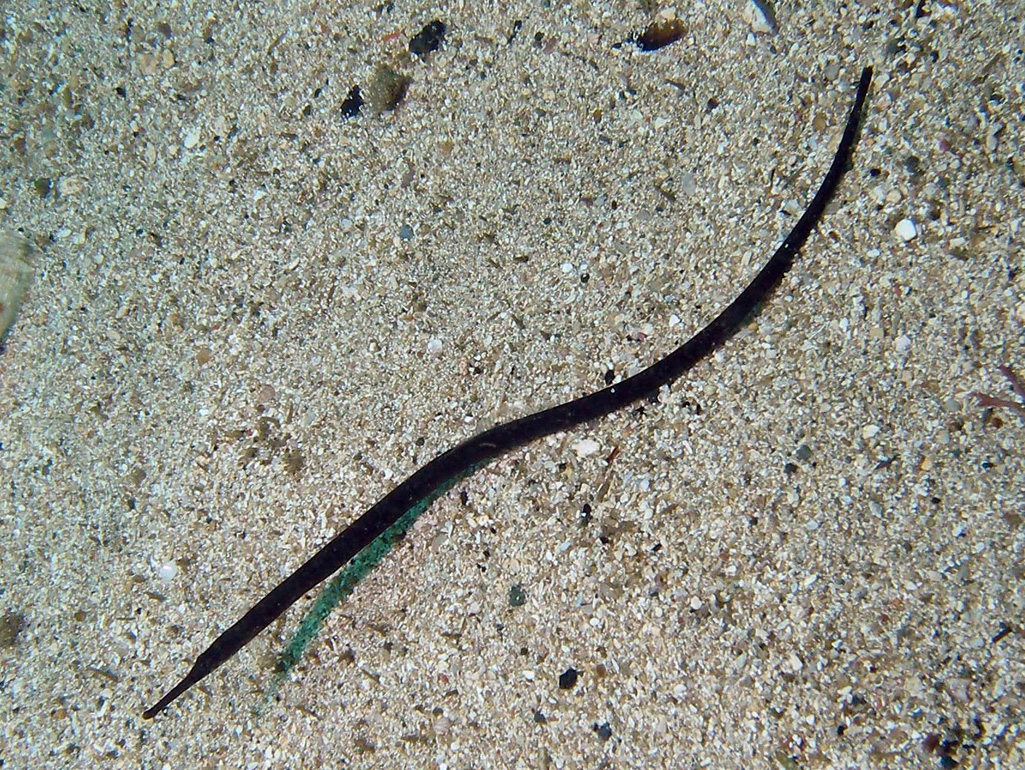 ほとんど黒に近くて細部が分かりませんが、藻場に近い浅い砂地(水深2m)で見るこのタイプはヨウジウオしかいません。