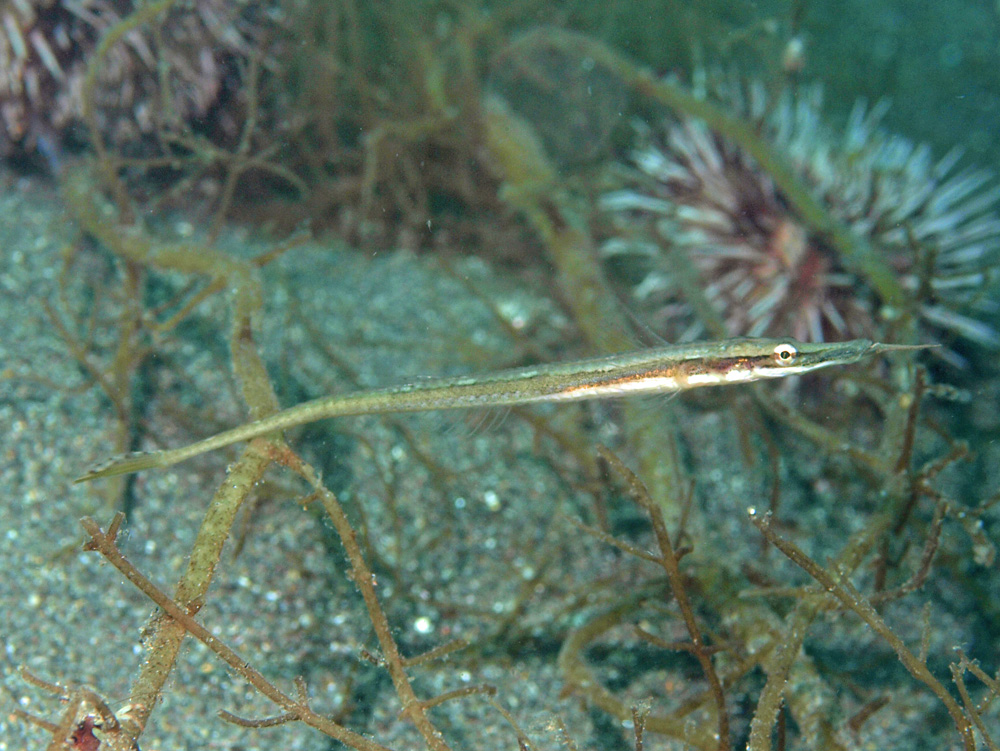 撮影 2010/08/19 北海道 羅臼 掲載 2014/12/10 ⇒トクビレの仲間 キョトンとした眼が愛嬌があるのと、下顎から伸びるヒゲが不自然で、全体としてブサカワイイお魚さんです。 長いヒゲがあるからといって老人でも仙人でもありません。でもちょっと考え深そうな印象は受けます。