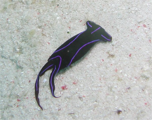 ニシキツバメガイと同じ頭循目に属していて、ウミウシでは最も古いタイプなんだそうです。それにしては形態も模様もスッキリと洗練されたモダンなデザインだと感心してしまいます。