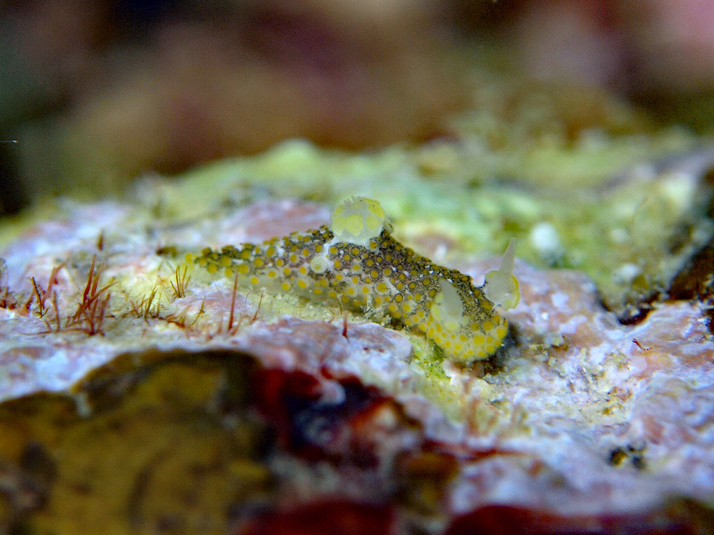 触角と鰓は純で可愛らしいのに、背中は豹のような文様で妖しげかつ恐ろしげな雰囲気を漂わせています。その相反性が大きな魅力になっていると、ウミウシ好きのボクは感じてしまいます。