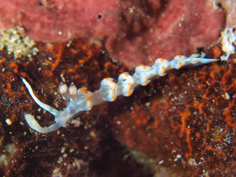 追記 2016/01/08 これまでサキシマミノウミウシとしていましたが、『ベータ版 日本のウミウシ』 中野理枝 (2015年 Version 4)にてケラマミノウミウシとされました。サキシマミノウミウシはF. takashigei につく和名だそうです。