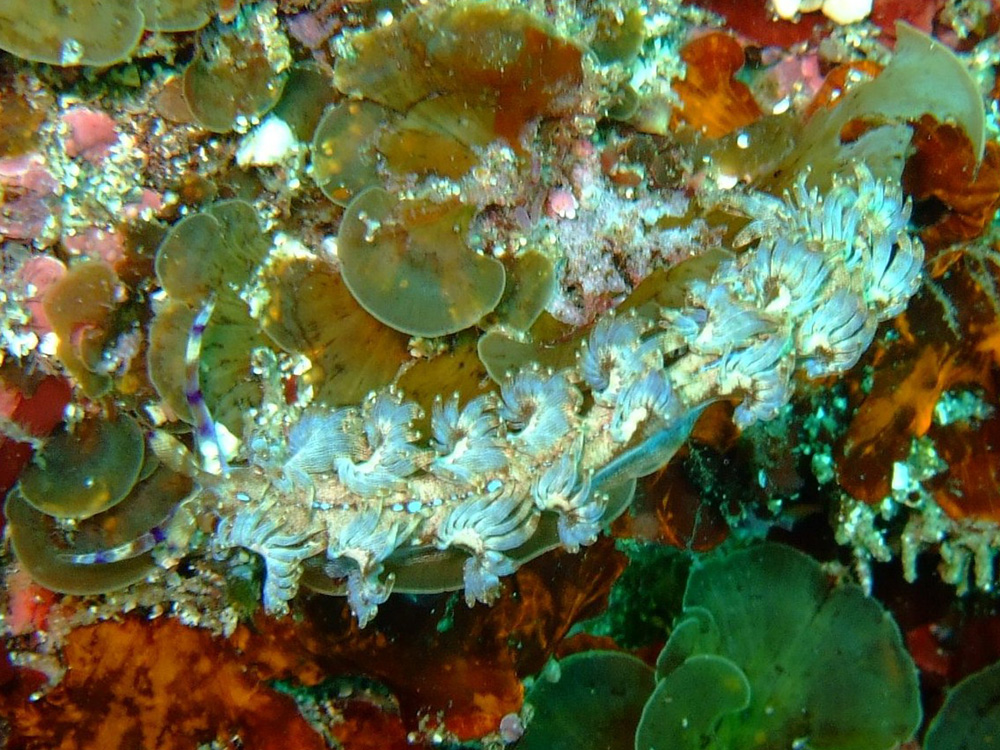 追記 2016/01/10 『ベータ版 日本のウミウシ』 中野理枝 (2015年 Version 4)によると、従来ムカデミノウミウシとされてきた種は複数種が含まれており、こちらは2012年にミナミムカデミノウミウシと名付けられました(学名は未確定)。ついでに特徴がわかりやすい写真に差替え。