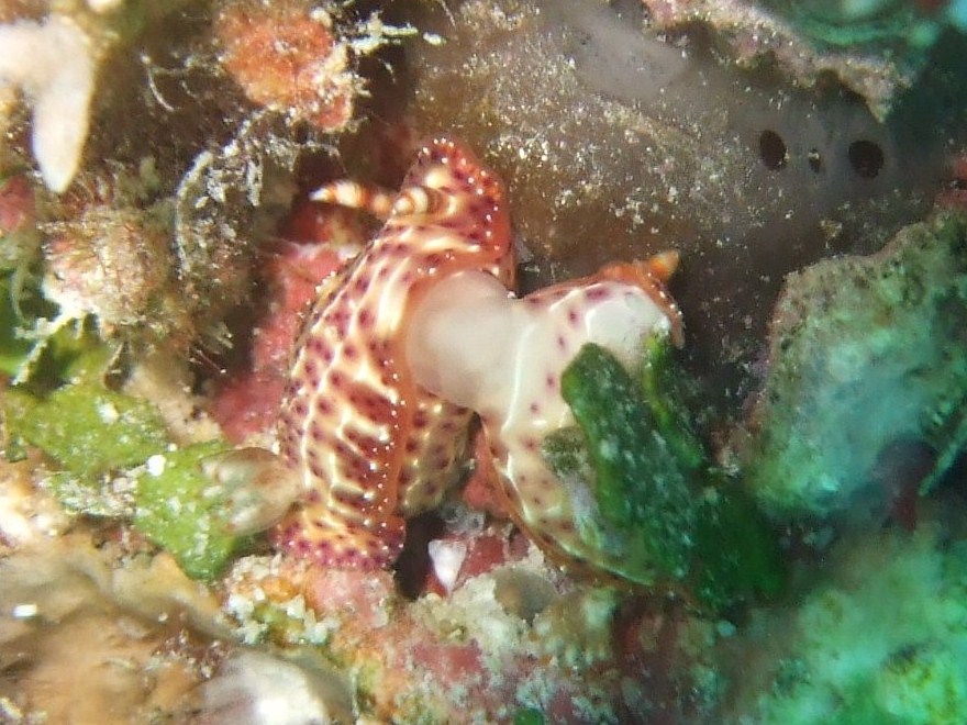 撮影 2008/04/06 沖縄県 黒島 掲載 2012/08/22 ⇒ウミウシの仲間 裸鰓目 ドーリス下目 失礼。 交接の真っ最中で取り込んでいるところにお邪魔してしまいました。撮影は終了しましたので、ごゆっくりドウゾ!