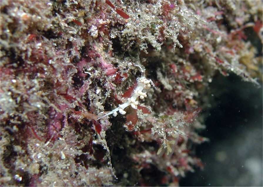 にらめっこしなければならなかった理由は、すでにだいぶこの水深でウロウロしたあとの帰り道で見つけたためで、その時点ですでに残り3分くらいの表示だったからです。大急ぎで撮った小サイズの被写体の写りとしてはマアこんなものかな、と思っています。